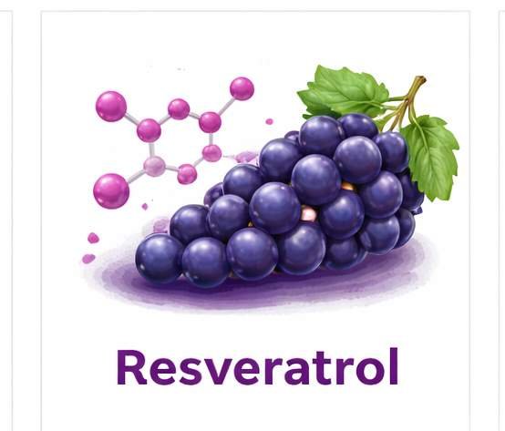 El resveratrol es un polifenol presente en la uva y otras plantas. Es ampliamente reconocido por su capacidad antioxidante.